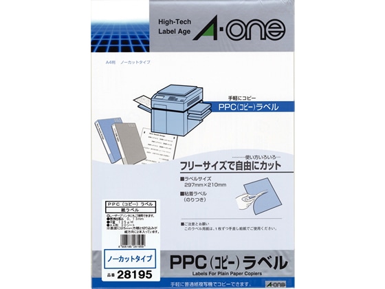エーワン PPC(コピー)ラベル A4 ノーカット 20枚 28195 1冊(ご注文単位1冊)【直送品】