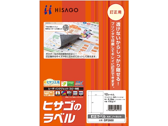 ヒサゴ 訂正ラベル A4 ノーカット 12シート OP2600 1冊(ご注文単位1冊)【直送品】