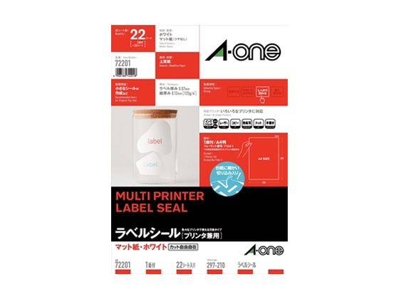 エーワン ラベルシール A4 ノーカット 22枚 72201 1冊(ご注文単位1冊)【直送品】