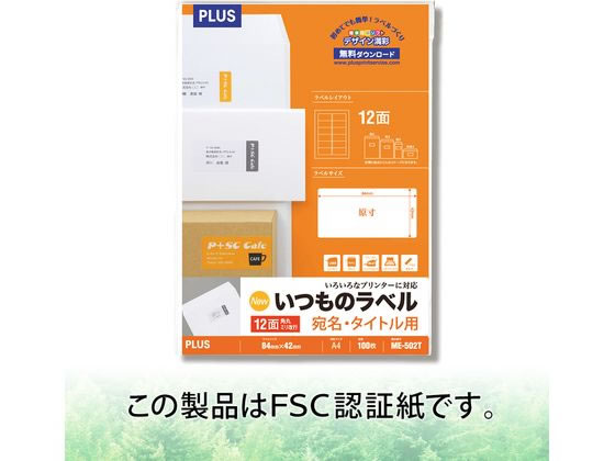 プラス いつものラベル A4 12面角丸 100枚 ME-502T 1冊(ご注文単位1冊)【直送品】