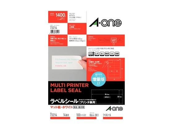 エーワン ラベルシール A4 14面 四辺余白 100枚 73214 1冊(ご注文単位1冊)【直送品】