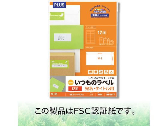 プラス いつものラベル A4 12面 100枚 ME-507T 48-636 1冊(ご注文単位1冊)【直送品】