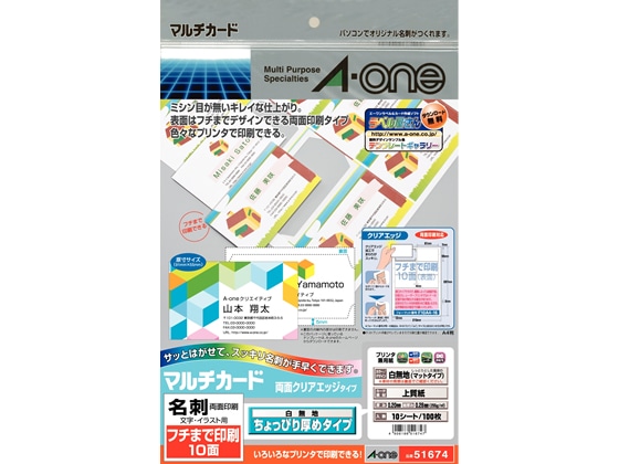 エーワン 名刺用マルチカード ちょっぴり厚口 A4 10面 10枚 1冊(ご注文単位1冊)【直送品】