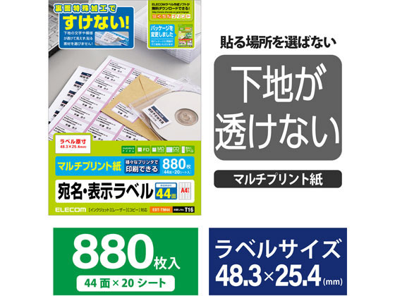 エレコム マルチプリント宛名・表示ラベル A4 44面 20シート EDT-TM44 1冊(ご注文単位1冊)【直送品】