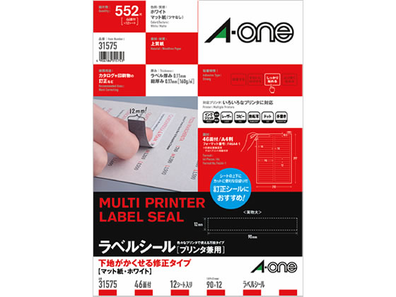 エーワン ラベルシール[下地隠せて修正] A4 46面 12シート 31575 1冊(ご注文単位1冊)【直送品】