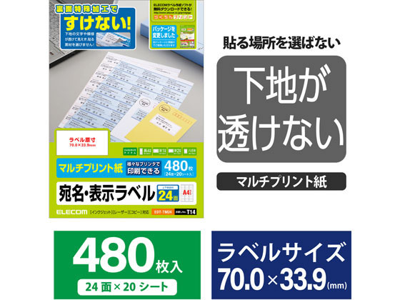 エレコム マルチプリント宛名・表示ラベル A4 24面 20シート EDT-TM24 1冊(ご注文単位1冊)【直送品】