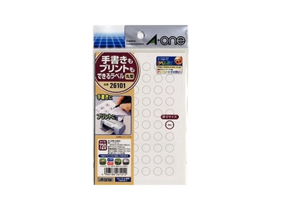 エーワン 手書きもプリントもできるラベル60面丸型12枚 26101 1冊(ご注文単位1冊)【直送品】