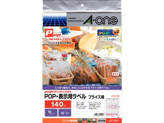 エーワン POP REVOLUTION プライス用ラベル A4 140面 51591 1冊(ご注文単位1冊)【直送品】