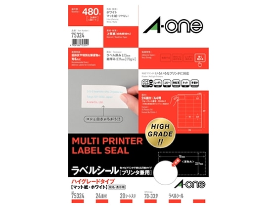 エーワン ラベルシール[ハイグレード] 24面 上下余白 20枚 75324 1冊(ご注文単位1冊)【直送品】