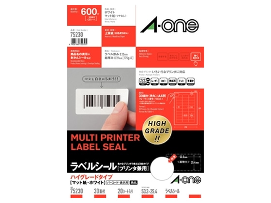 エーワン ラベルシール[ハイグレード] 30面 四辺余白 20枚 75230 1冊(ご注文単位1冊)【直送品】