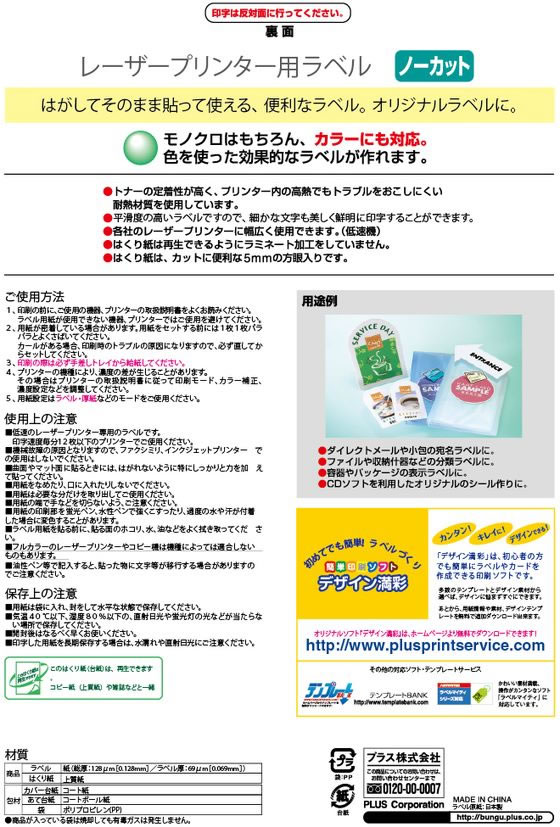 プラス レーザー用ラベルA4 ノーカット 20枚 45-970 LT-500 1冊(ご注文単位1冊)【直送品】
