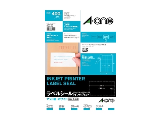 エーワン IJ用ラベルA4 20面 20枚 60220 1冊(ご注文単位1冊)【直送品】