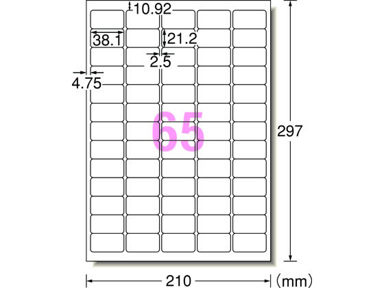 エーワン ラベルシール 耐水タイプ光沢紙 65面 64265 1冊(ご注文単位1冊)【直送品】
