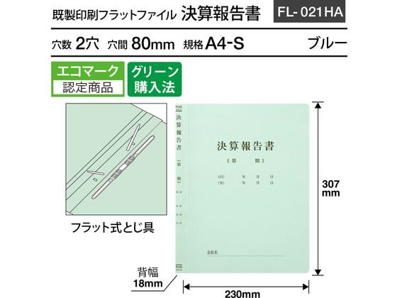 プラス 既製印刷フラットファイルA4-S 決算報告書 10冊 1パック(ご注文単位1パック)【直送品】