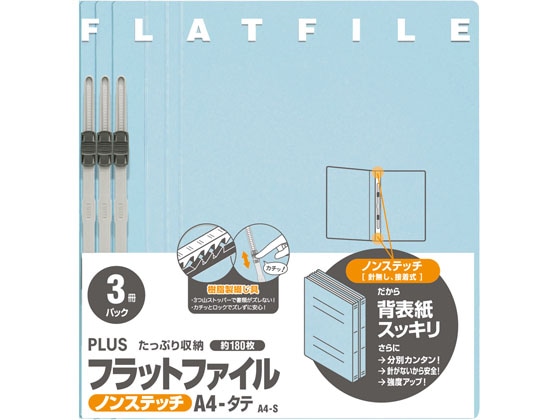 プラス フラットファイル ノンステッチ A4タテ ロイヤルブルー 3冊 NO.023NP 1パック(ご注文単位1パック)【直送品】