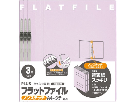 プラス フラットファイル ノンステッチ A4タテ バイオレット 3冊 NO.023NP 1パック(ご注文単位1パック)【直送品】