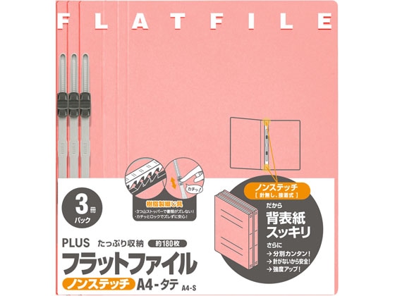 プラス フラットファイル ノンステッチ A4タテ ピンク 3冊 NO.023NP 1パック(ご注文単位1パック)【直送品】
