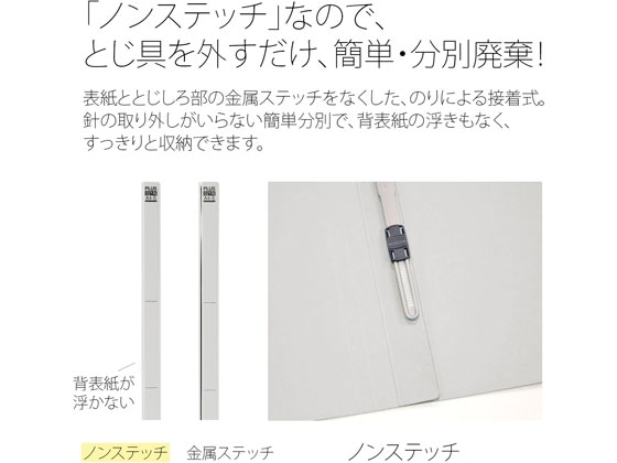 プラス フラットファイル ノンステッチ A4タテ グレー NO.021N 78-039 1冊(ご注文単位1冊)【直送品】