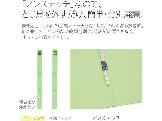 プラス フラットファイル ノンステッチ A4ヨコ グリーン NO.022N 78-276 1冊(ご注文単位1冊)【直送品】