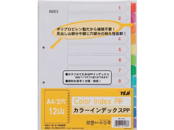 テージー カラーインデックスPP A4タテ 12山 2穴 5冊 IN-1412 1パック(ご注文単位1パック)【直送品】