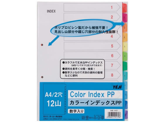 テージー カラーインデックスPP A4タテ 12山(数字入り) 2穴 5冊 1パック(ご注文単位1パック)【直送品】
