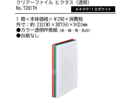 キングジム クリアーファイル ヒクタス(透明) A4 10ポケット 緑 7281THミト 1冊(ご注文単位1冊)【直送品】