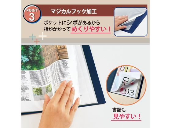 プラス クリアーファイル+ A4タテ 40ポケット ネイビー 75871 FC-504EL 1冊(ご注文単位1冊)【直送品】