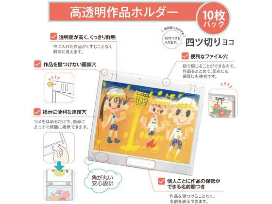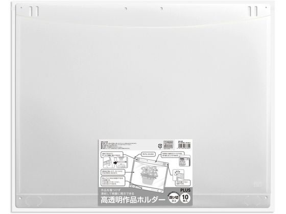 プラス 掲示用 高透明作品ホルダー 四ツ切ヨコ 10枚入 98029 1パック(ご注文単位1パック)【直送品】