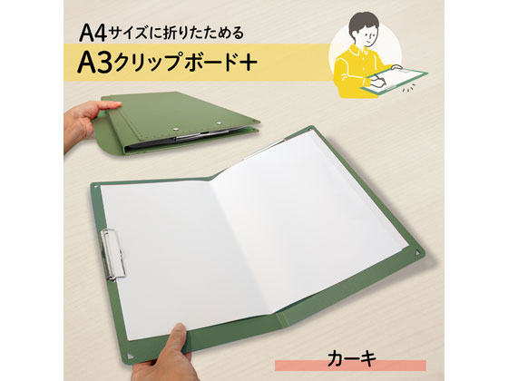 プラス おりたためるA3クリップボード+ カーキ 83154 FL-501CP 1冊(ご注文単位1冊)【直送品】