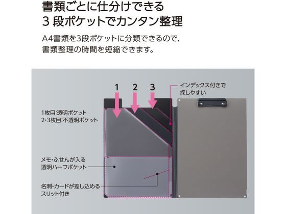 コクヨ 書類すっきりクリップホルダー A4 ディープブラック 1冊(ご注文単位1冊)【直送品】