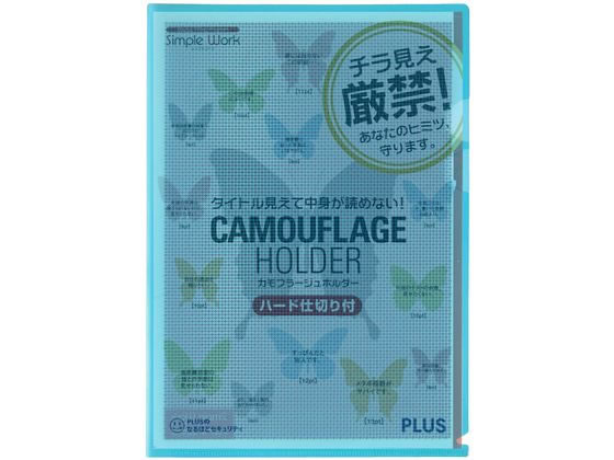 プラス クリアーホルダー カモフラージュ ハード仕切り付 A4 ブルー 89571 1枚(ご注文単位1枚)【直送品】
