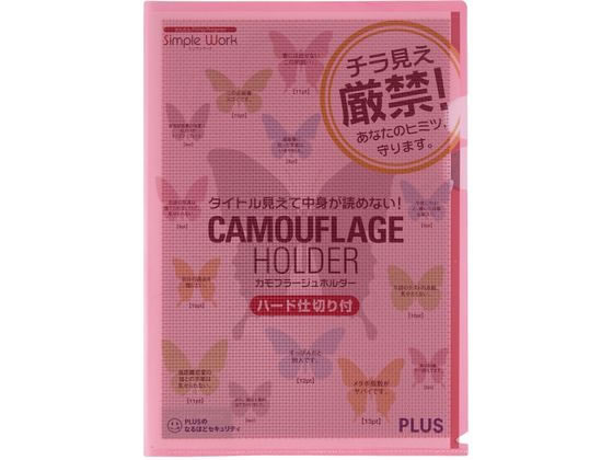 プラス クリアーホルダー カモフラージュ ハード仕切り付 A4 ピンク 89574 1枚(ご注文単位1枚)【直送品】