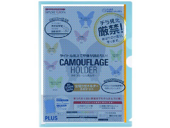 プラス 仕切り付ホルダー カモフラージュ 3ポケット A4 ブルー 89581 1枚(ご注文単位1枚)【直送品】
