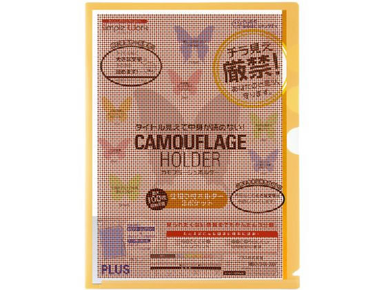 プラス 仕切り付ホルダー カモフラージュ 3ポケット A4 オレンジ 89583 1枚(ご注文単位1枚)【直送品】
