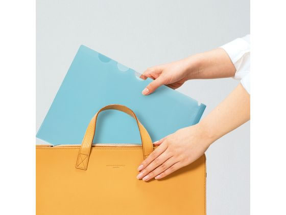 プラス 仕切り付ホルダー・3ポケット A4 ブルー 50枚 1袋(ご注文単位1袋)【直送品】