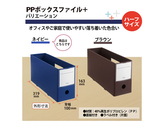 プラス PPボックスファイル+ ハーフサイズ ネイビー FL-125BF-H 76000 1冊(ご注文単位1冊)【直送品】