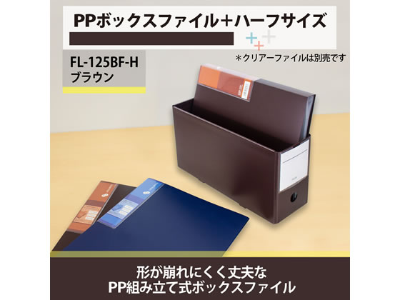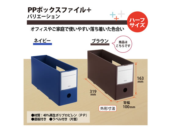 プラス PPボックスファイル+ ハーフサイズ ブラウン FL-125BF-H 76002 1冊(ご注文単位1冊)【直送品】