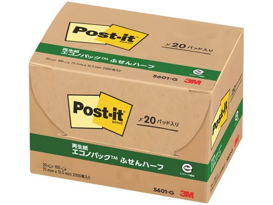 3M 〈ポスト・イット〉再生紙エコノパック グリーン 20冊 5601-G 1箱(ご注文単位1箱)【直送品】