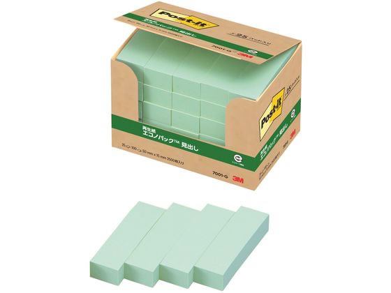 3M 〈ポスト・イット〉再生紙エコノパック グリーン 25冊 7001-G 1箱(ご注文単位1箱)【直送品】