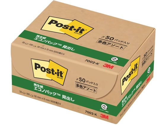 3M ポスト・イット 経費削減パワーパック 4色ミックス 50冊 7002-K 1箱(ご注文単位1箱)【直送品】
