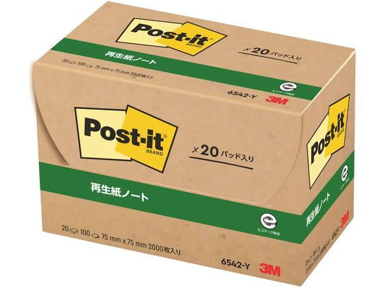 3M 〈ポスト・イット〉経費削減パワーパック イエロー 20冊 6542-Y 1箱(ご注文単位1箱)【直送品】