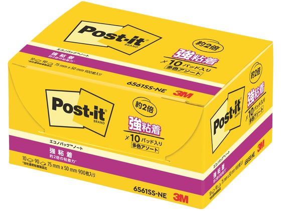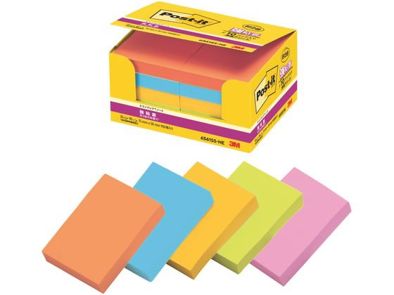 3M ポスト・イット エコノパック 強粘着ノート ネオンカラー混色 10冊 1箱(ご注文単位1箱)【直送品】