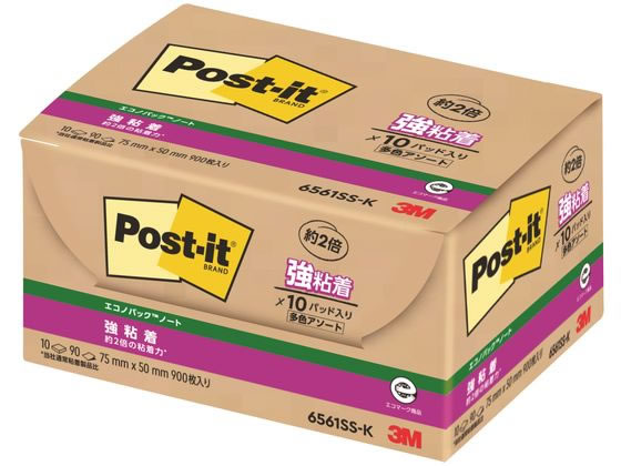3M ポスト・イット エコノパック 強粘着ノート パステルカラー混色 10冊 1箱(ご注文単位1箱)【直送品】