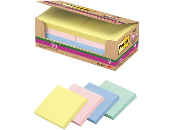 3M 〈ポストイット〉エコノパック強粘着ノート パステルカラー 4色 10冊 1箱(ご注文単位1箱)【直送品】