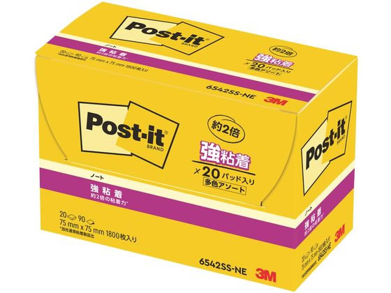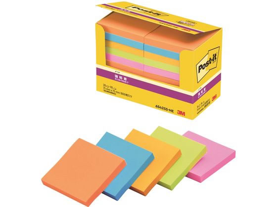 3M 〈ポストイット〉強粘着ノート パワーパック5色20冊 6542SS-NE 1箱(ご注文単位1箱)【直送品】