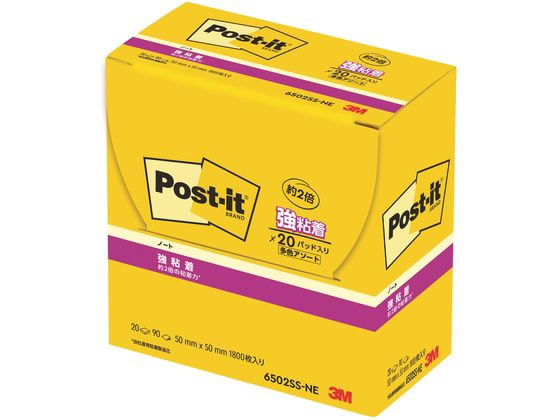 3M 〈ポストイット〉強粘着ノート パワーパック5色20冊 6502SS-NE 1箱(ご注文単位1箱)【直送品】
