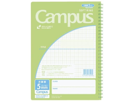 コクヨ キャンパス ソフトリングノート 方眼罫 セミB5 ライトグリーン 1冊(ご注文単位1冊)【直送品】