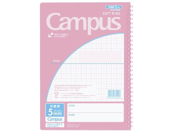 コクヨ キャンパス ソフトリングノート 方眼罫 セミB5 ライトピンク 1冊(ご注文単位1冊)【直送品】