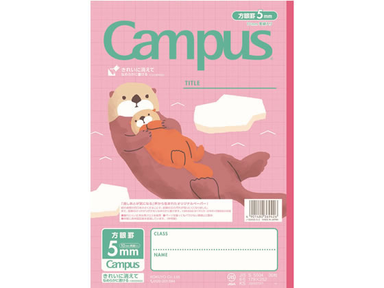 コクヨ キャンパスノート用途別(アニマル柄) セミB5 5mm方眼 ラッコ 1冊(ご注文単位1冊)【直送品】