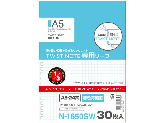 リヒトラブ ツイストノート専用リーフ A5 薄色5mm方眼罫30枚 N1650SW 1パック(ご注文単位1パック)【直送品】